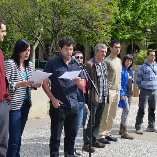 Las personas que nos encontramos aquí, en la recién inaugurada Plaza de la Libertad, representamos sensibilidades y ambitos diferentes de la sociendad navarra, y desde aquí queremos anunciar la manifestación que el 19 de junio a las 12:00 del mediodía partirá de la antigua estación de autobuses que tendrá como objetivo reivindicar y exigir el fin de la política de dispersión.