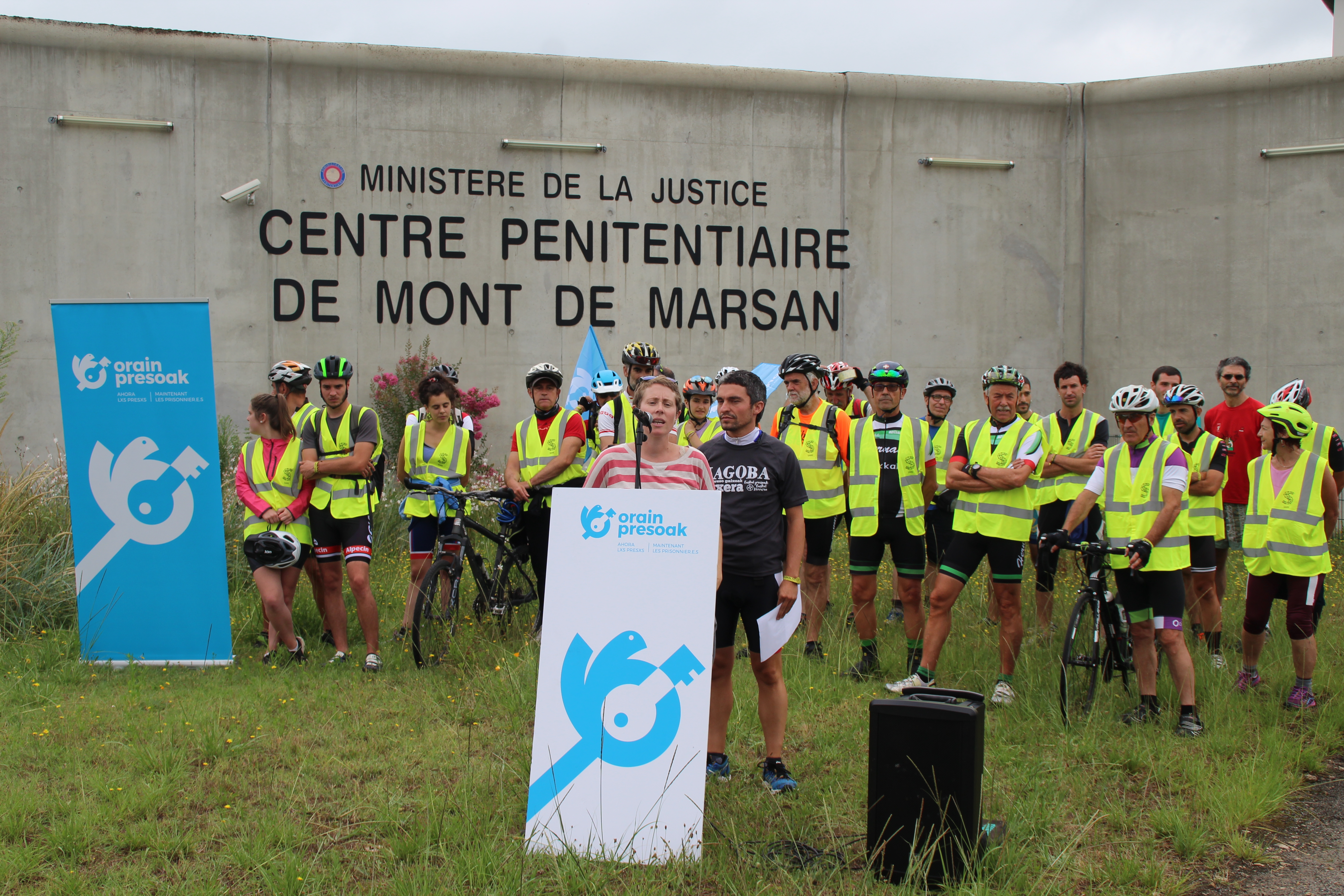 Mont de Marsan eta Zaballa batuko dituen Orain Presoak dinamikaren baitako bizikleta itzulia hasi da gaur Mont de Marsaneko espetxe parean. 35 lagun inguru abiatu dira lehen etapa honetan, eta Bagoaz zein Sareko ordezkariek martxari hasiera eman ostean erritmo lasaiean joan dira bidean aurrera.