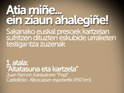 - Zentzu honetan, azken hauteskundeetako emaitzei erreferentzia egiteko probestu nahi dugu tarte hau ere. Argi ikusten baitugu, emaitzei erreparatuz, espetxe politikan oraindik bizi dugun inpas egoera aldatzeko gehiengoa badela. Amaitu dira beraz aitzakiak. Borondate politiko kontua da orain gehiengo horiek baliatuz urratsak ematea. Modu batera zein bestera, gorroto eta mendeku dinamikak alboratu eta giza eskubideak errespeta daitezen eta sufrimendu oro amai dadin akordioak eta urratsak emateko eskatzen jarraituko dugu.