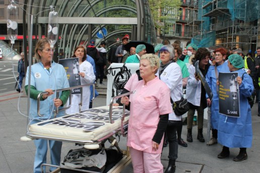 Osasunaren Nazioarteko Eguna dela eta, hainbat ekimen egin dira Bilbon eta Iruñean salbuespen neurriek euskal presoen osasunean duten eragina salatzeko.