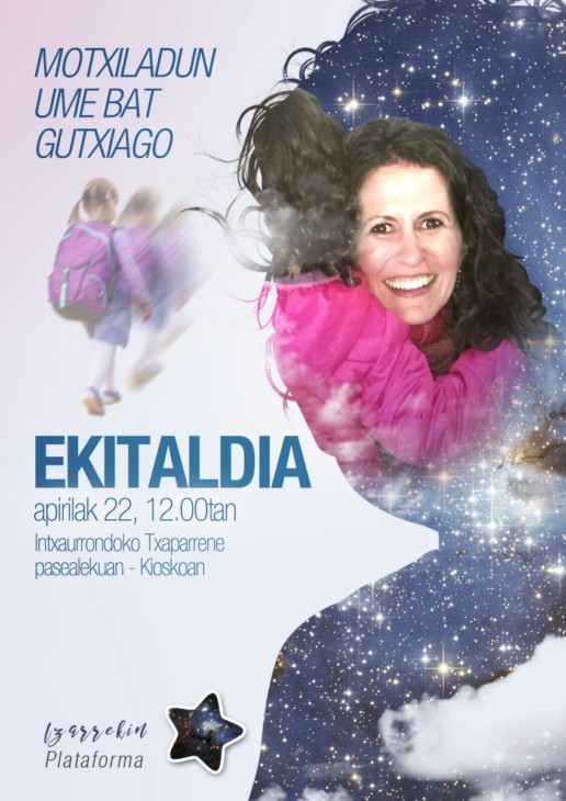 Ekitaldia 12.00etan egingo dugu Intxaurrondoko Txaparrene pasealekuan (kioskoa dagoen plazatxoan). Ekitaldian zehar Izarrekin Sara Etxera plataformak, Donostiako mugimendu feministak eta Motxiladun umeen ordezkari batek hartuko dute hitza, halaber, bertan izango da Porrotx pailazoa, eta bertsoak, musika eta dantza ere ez dira faltako.