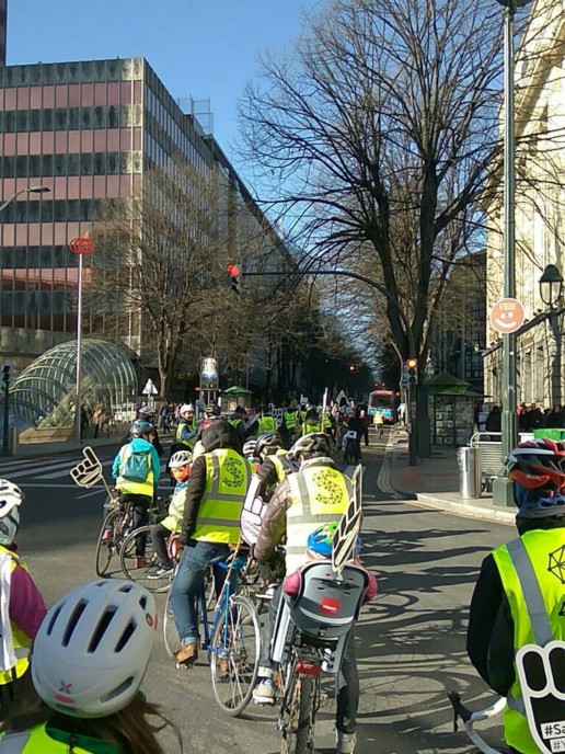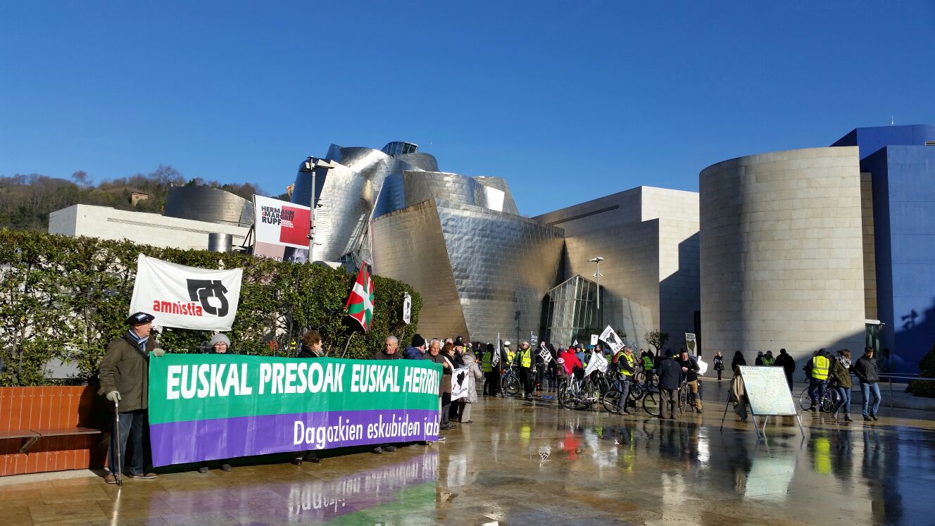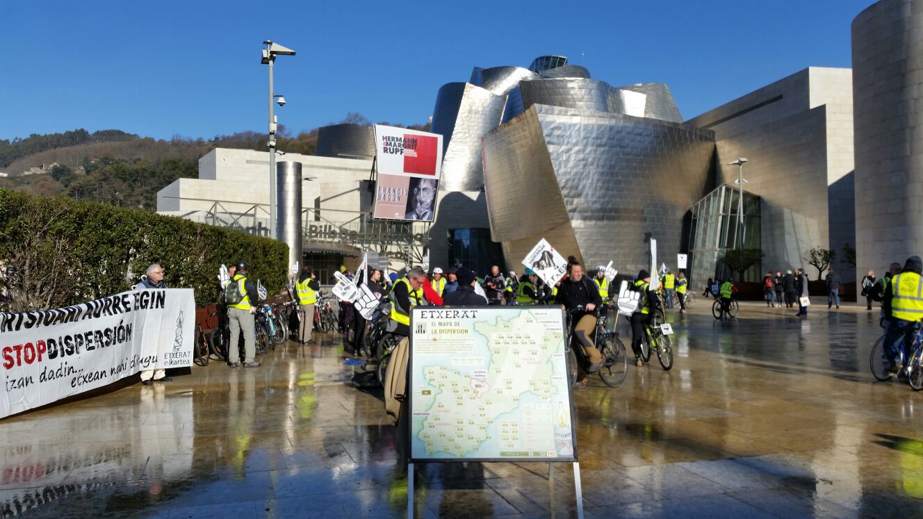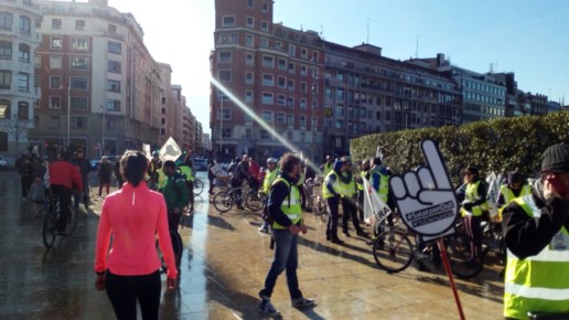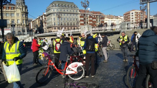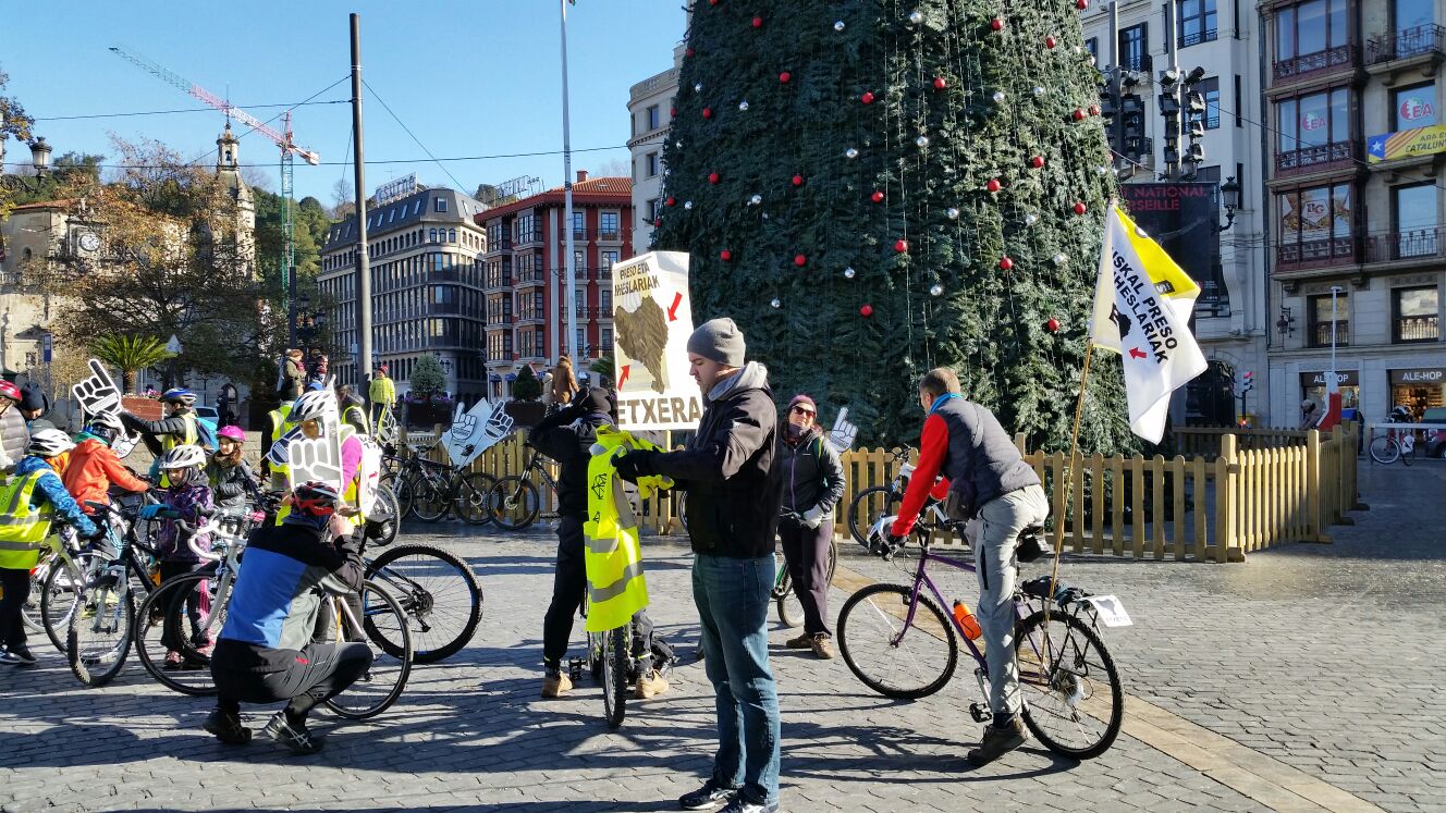 Euskal presoen eskubideen aldeko bizikleta martxa egin zuten Bilbon