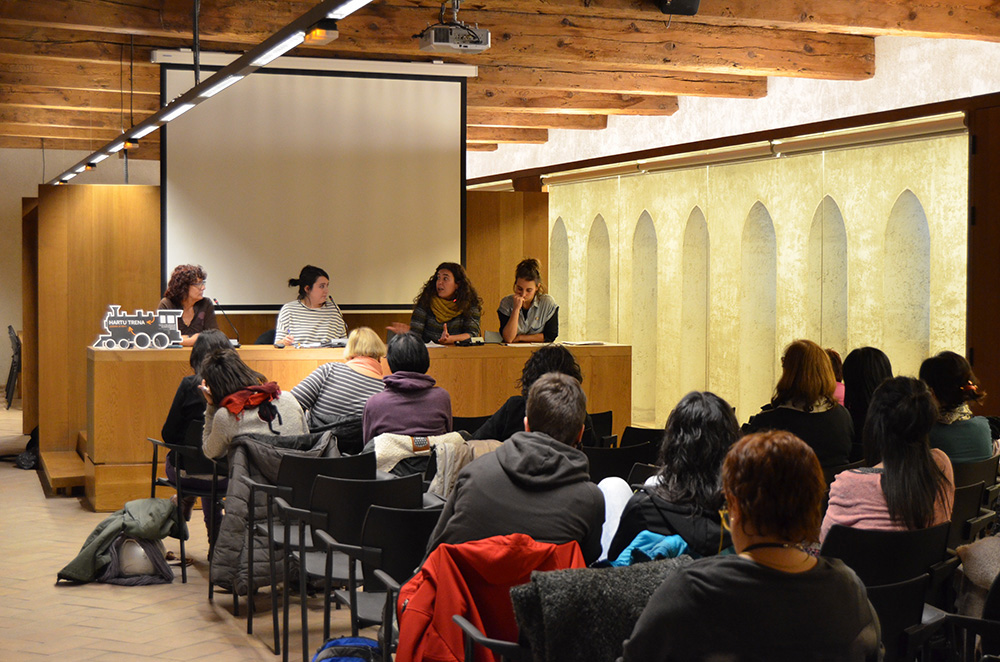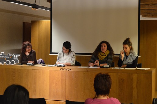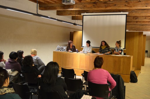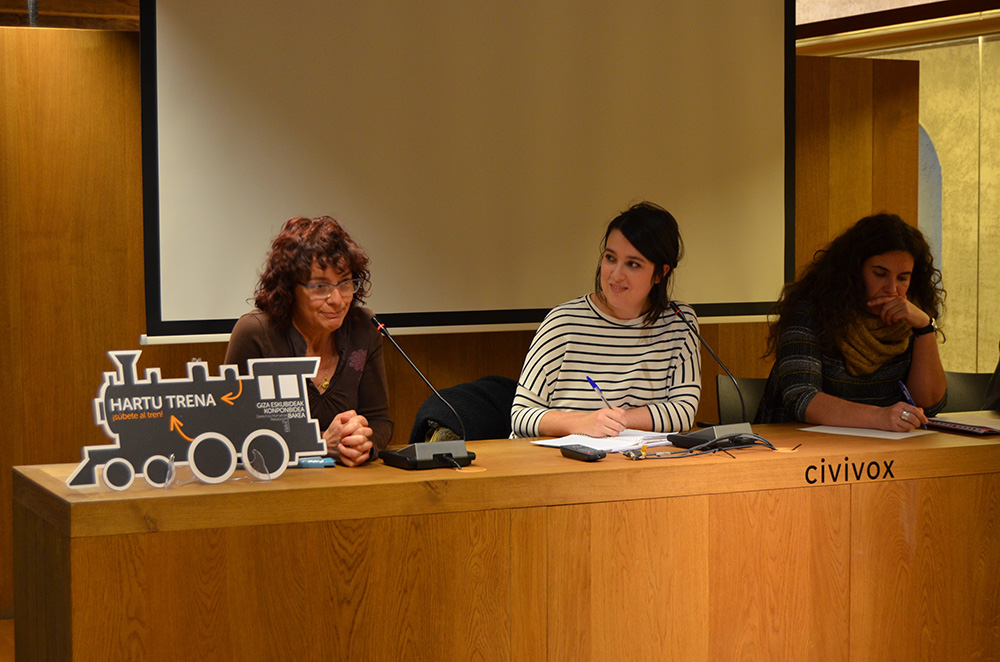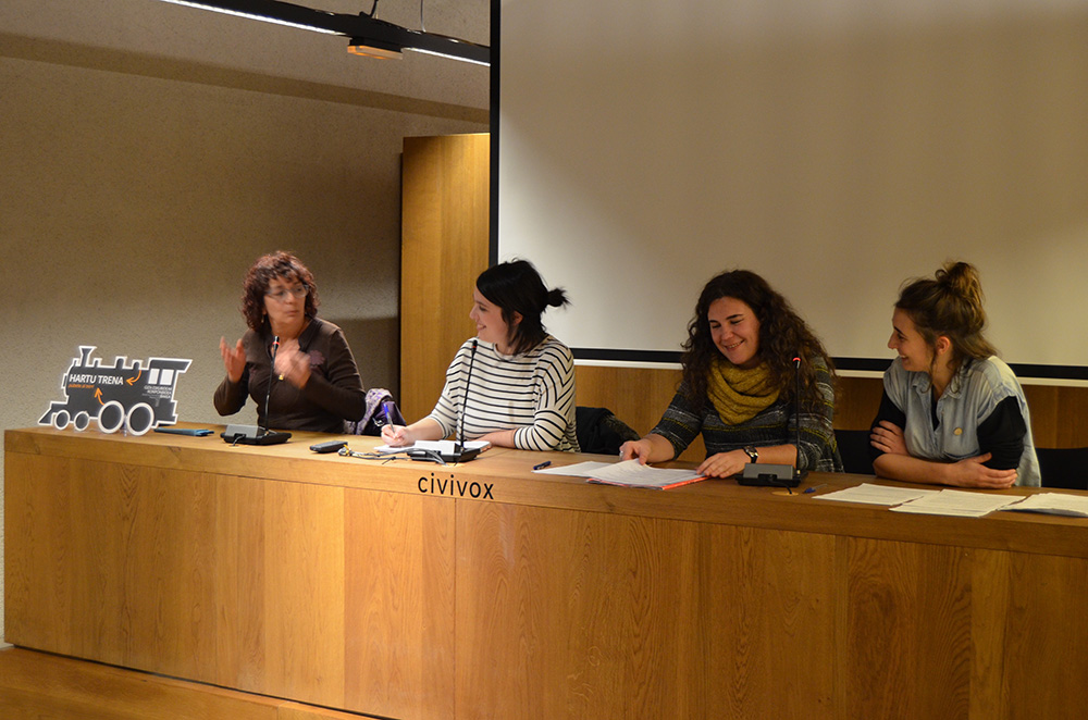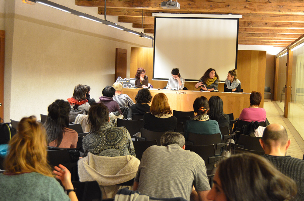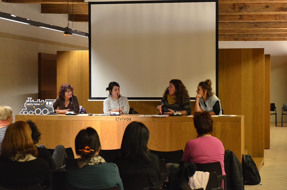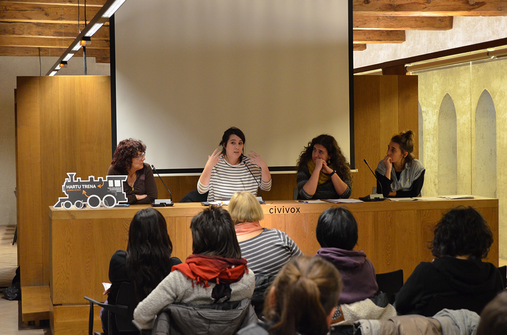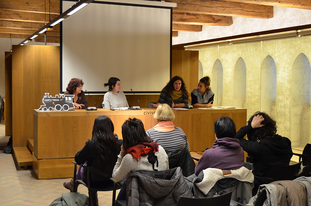 Oihana Etxebarrietak, Euskal Herriko Bilgune Feministako kideak, Urtza Alkorta sarekideak eta preso ohia eta senide den Mila Jimenezek hainbat gai mahaigaineratu zituzten: nola eragiten dion dispertsioak emakumeari, nolako harremanak dituen emakumeak espetxean, nola bizitzen duen amatasuna…