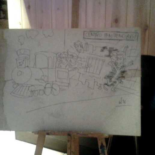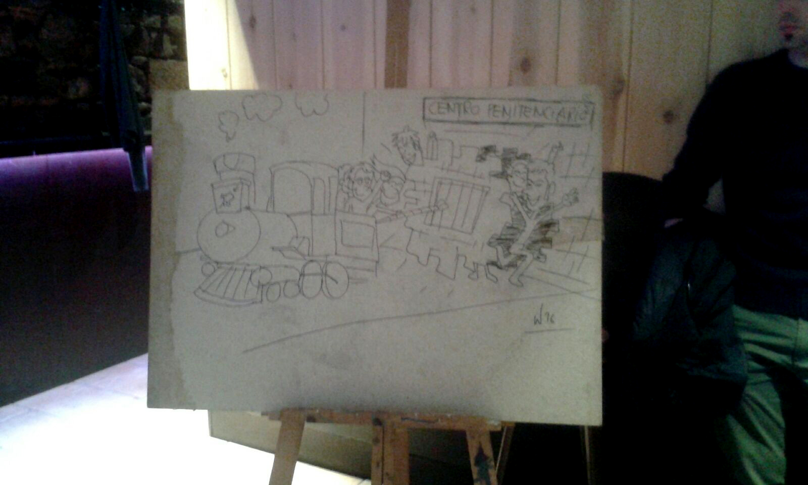 70 urte baino gehiago dituen Karlos Trenorren poesiak entzun genituen Pelaz eta Eneko Sierraren musikaz giroturik, Aratz Trecet margolariak bisitan trenez martxa hartzeko momentua marrazki batean irudikatzen zuen bitartean.