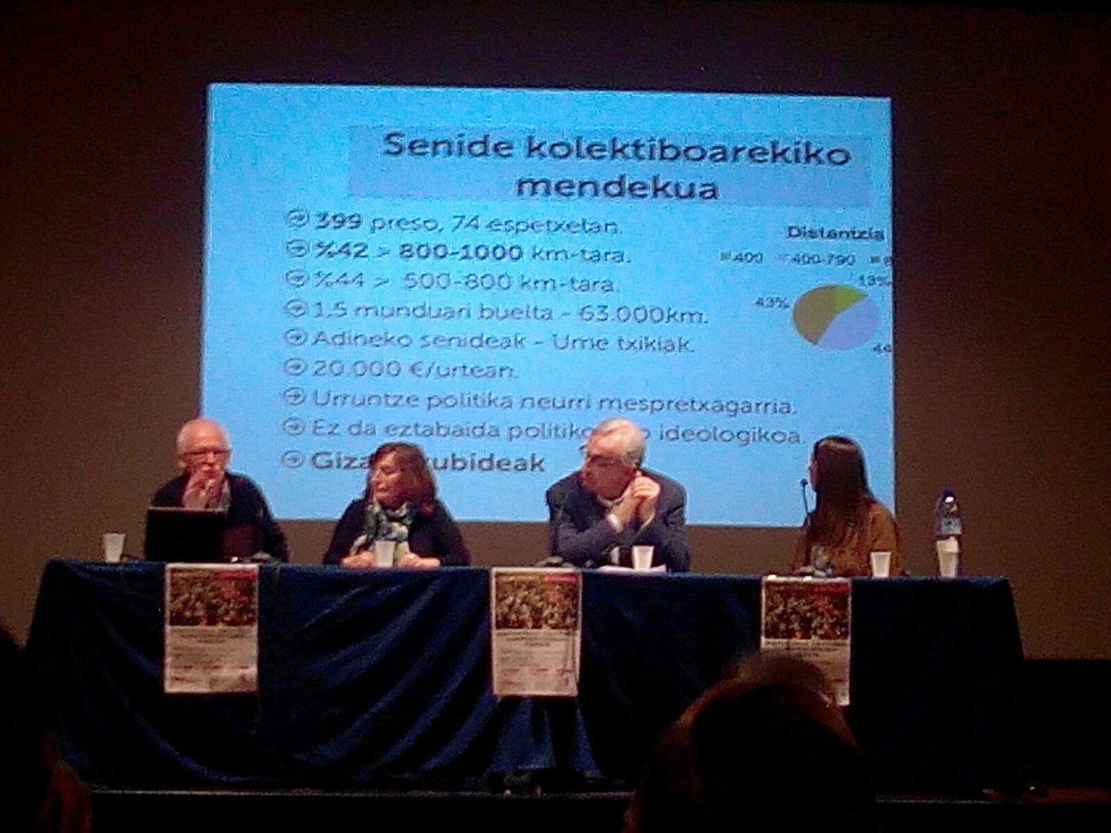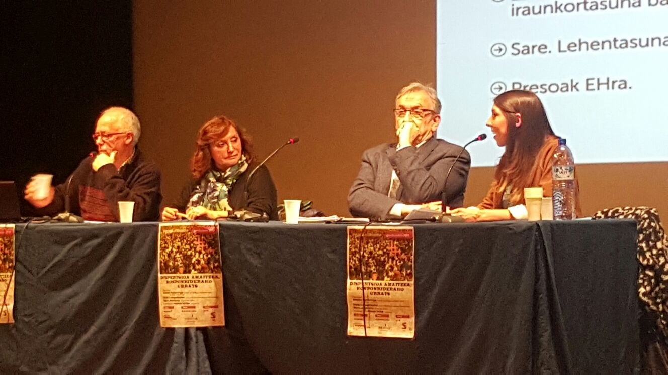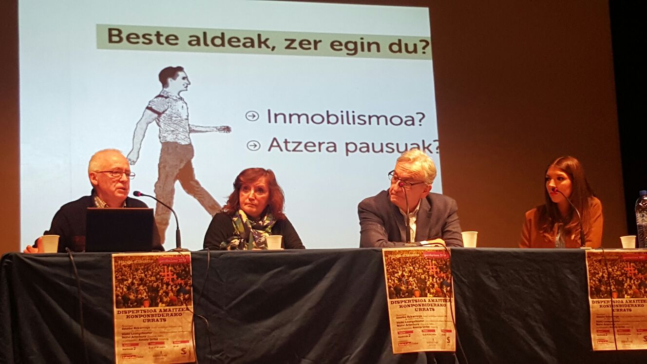 Hitzaldiaren izenburua: ” Dispertsioa amaitzea, konponbiderako ezinbesteko urrats” izan zen eta 80-100 bat lagunek parte hartu zuten. Sortu zen eztabaidaren baitan Gernika Batzordeko kide batek Gernikako Foro Sozialaren haritik egiten ari diren armagabetzearen inguruko lanaren berri eman zigun, Ramon Zallo EHU/UPV-ko irakasleak bere egungo egoeraren  gogoeta konpartitu zuen, Sare Gernikako sarekide batek Ispilue proiektuaren berri eman zuen  eta  beste hainbat interbentzio egon ziren. Ezberdinen arteko konponbiderako eztabaida soziala sustatzea zen helburua eta modu emankorean gauzatu zela ondoriozta dezakegu.