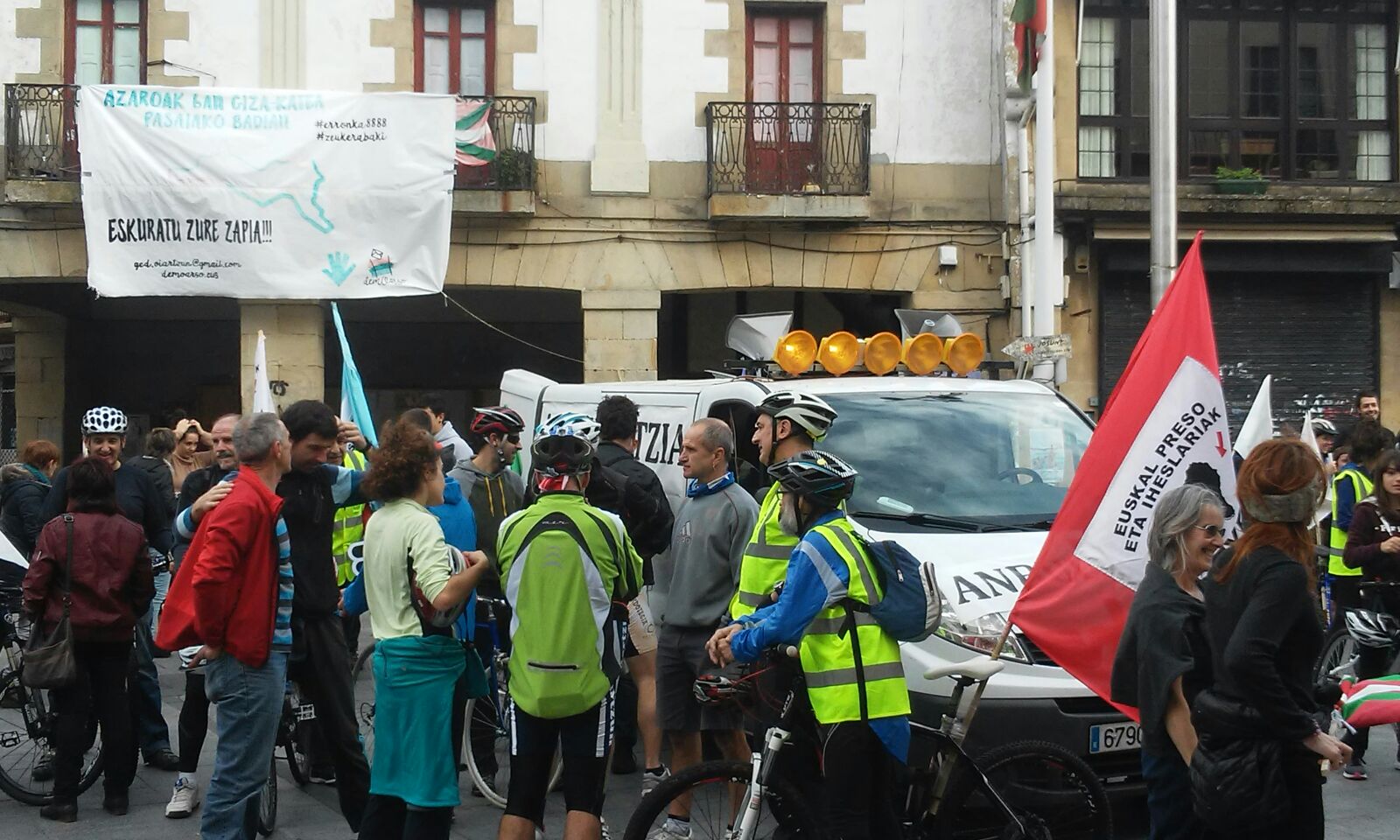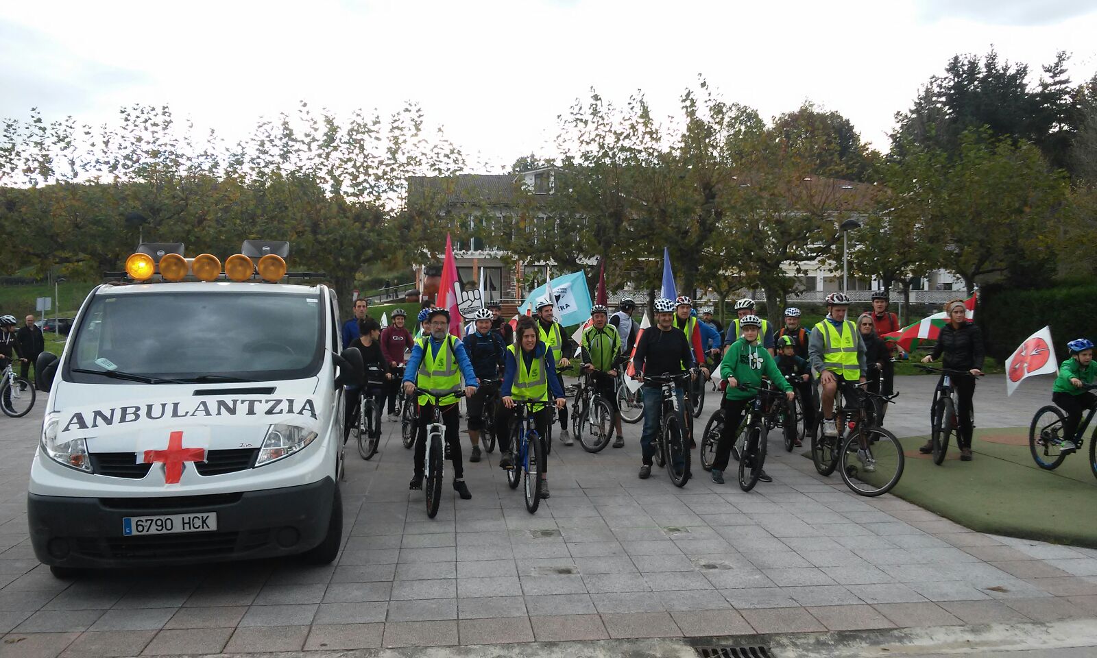 Larriki gaixorik dauden euskal presoen askatasuna eskatzeko Bizikleta martxa egin zuten Oiartzunen