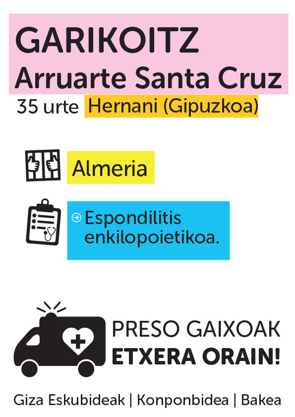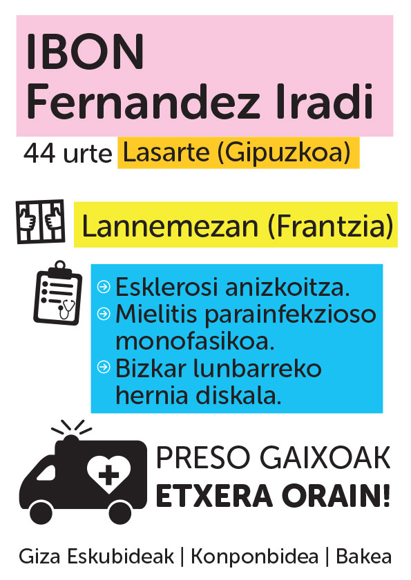 Lorentxa Guimon euskal presoak Crohn izeneko gaixotasun larria pairatzen du 1991.urtean diagnostikatu ziotenetik. Hesteetako hanturazko gaixotasuna da hau, tratamendu berezia behar duen gaixotasuna, alegia. Tratamendu berezi hori espetxe barruan ematea oso zaila izateaz gain, baldintzak, argi dago, oso kaskarrak dira. Kaskarrak, bidegabeak, pertsonen giza eskubideen aurkakoak eta mendekuan oinarritutakoak.