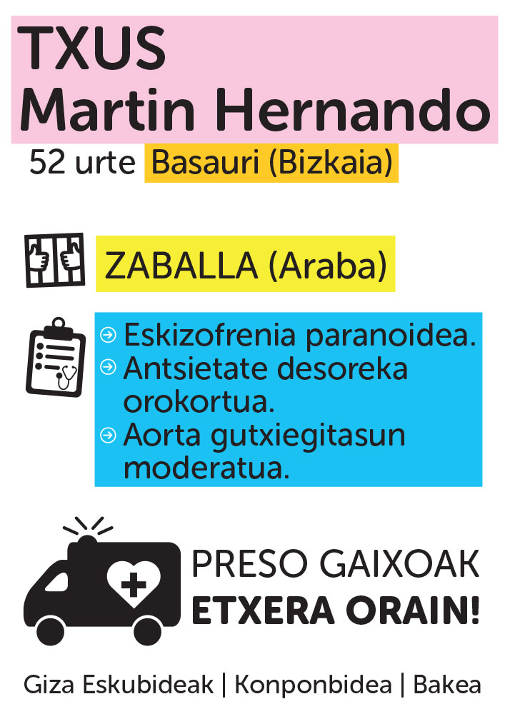 Hau guztia agerikoa den arren, are agerikoagoa bilakatzen da Guimon erietxera eraman behar izan dutela enteratu garenean, espetxeko medikuek aginduta. Azaroaren 24an bere baldintzapeko askatasuna onartu zuten arren, fiskaltzak errekurtsoa jarri ostean, espetxean mantendu dute presoa. Urtarrilaren 14an erabakiko dute baldintzapean aske utzi edo ez, baina egoerak bere askatasuna lahenbailehen ematea exijitzen du; ezin du hainbeste itxaron, ezin dugu hainbeste itxaron.