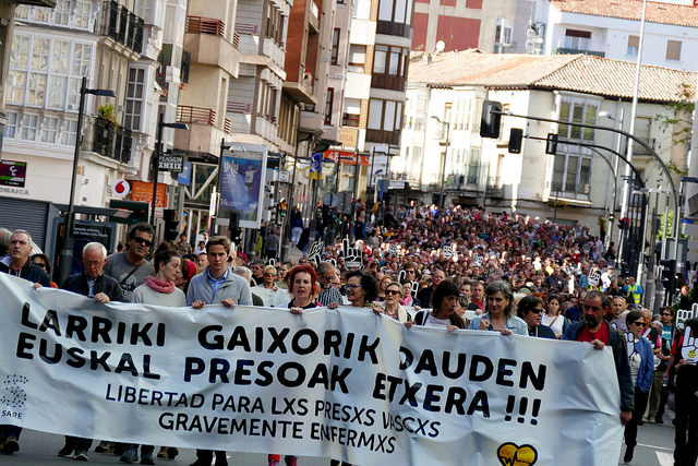 Salatzen dugu Espainiako Gobernua, xantaia eta salerosketa politikorako erabiltzen baititu pertsona horien osasuna eta bizitza. Gobernu horrek adierazi du egoera jakin batean soilik askatuko dituela larriki gaixo dauden presoak: laster hilko direla ziurtatuta dagoenean. Adierazpen horrek, Espainiako Gobernuaren mendekuzko izaera negargarria erakutsi ez ezik, argi eta garbi hausten ditu gai horri dagozkion bere legeak eta Europakoak. Larriki gaixo dauden presoak berehala askatu behar dira, baina ez hil daitezen, baizik eta, hain zuzen ere, ahal izanez gero, askatasunik gabeko urte horietan galdutako osasuna berreskura dezaten.
