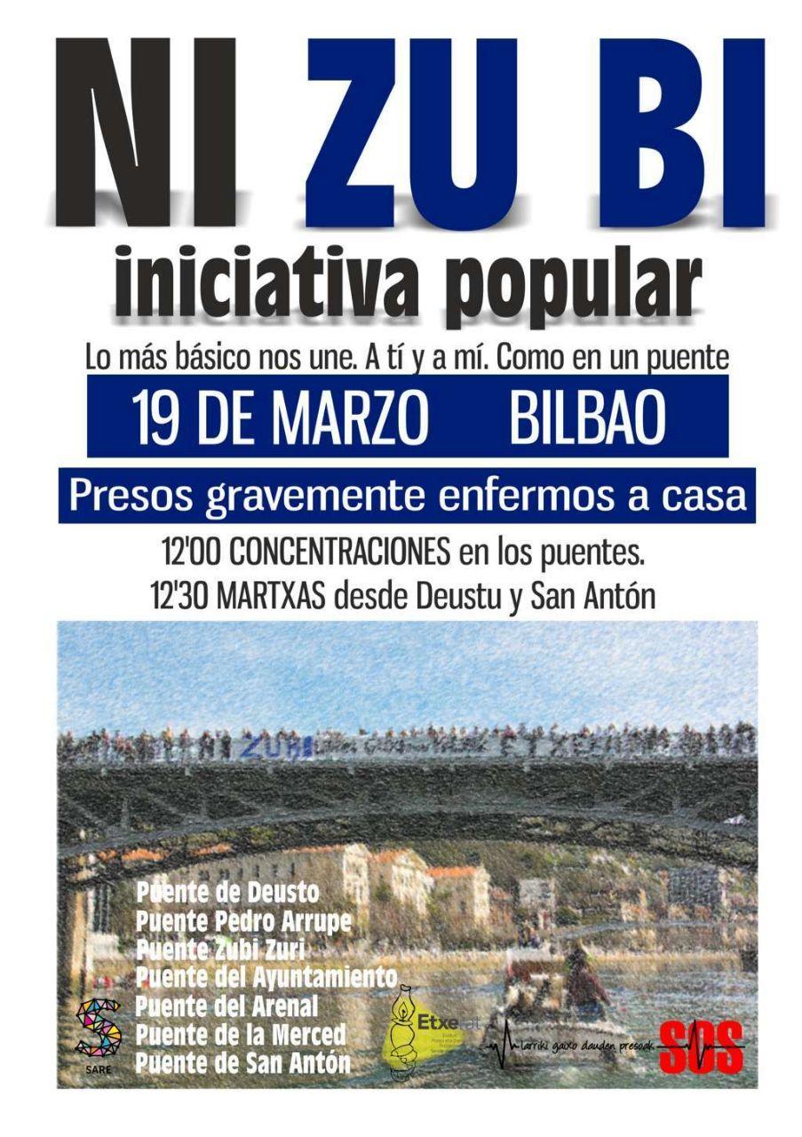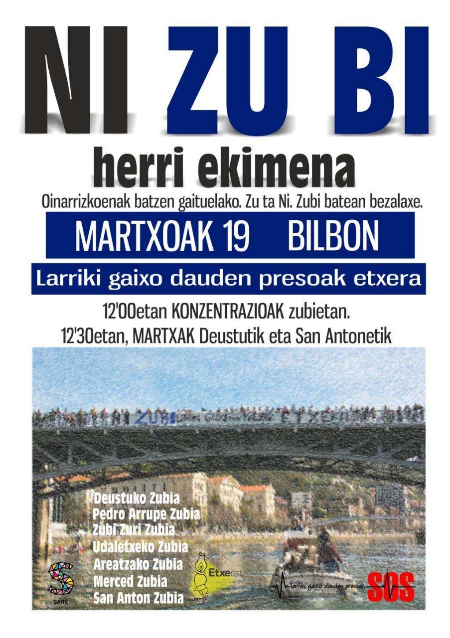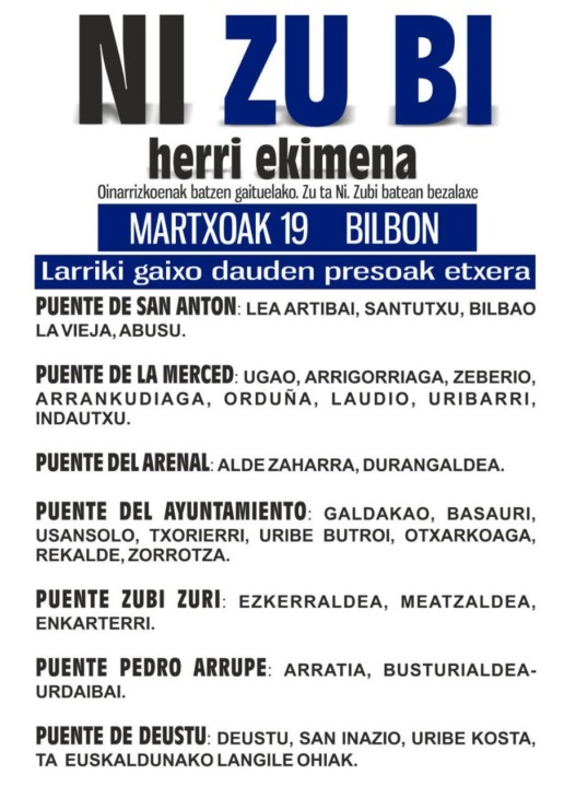 Horregatik, Ni Zu Bi dinamikaren barruan, dei egiten dugu martxoaren 19an Bilboko zubietan elkartzera. Eraiki ditzagun ezberdinen arteko zubiak, etorkizun hobea eraikitzeko.