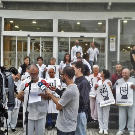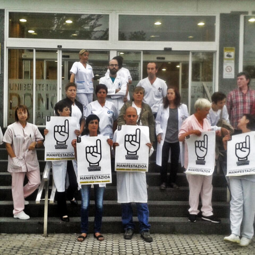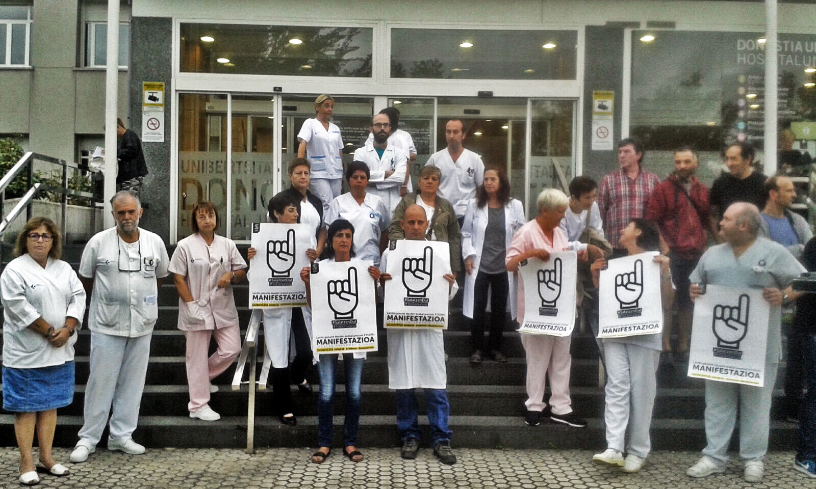 Giza Eskubideen errespetua oinarri izango duen elkarbizitzarako gizarte bat aldarrikatu dute gaur goizean osasun alorreko zenbait profesionalek Donostiako ospitalean.