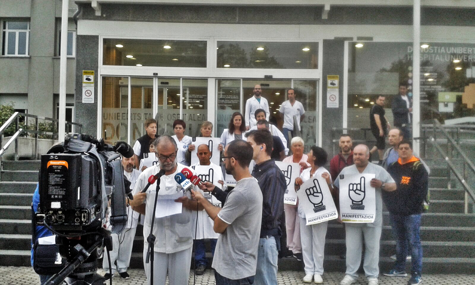 Trabajadores del Hospital Donostia secundan la convocatoria de Sare del 15 de octubre.