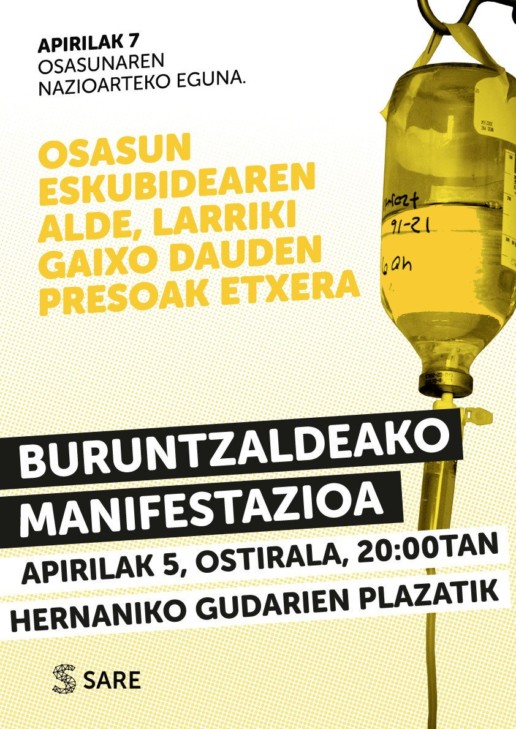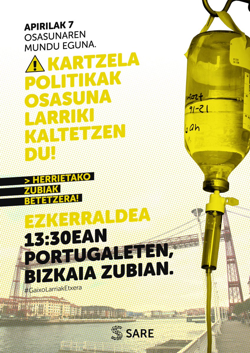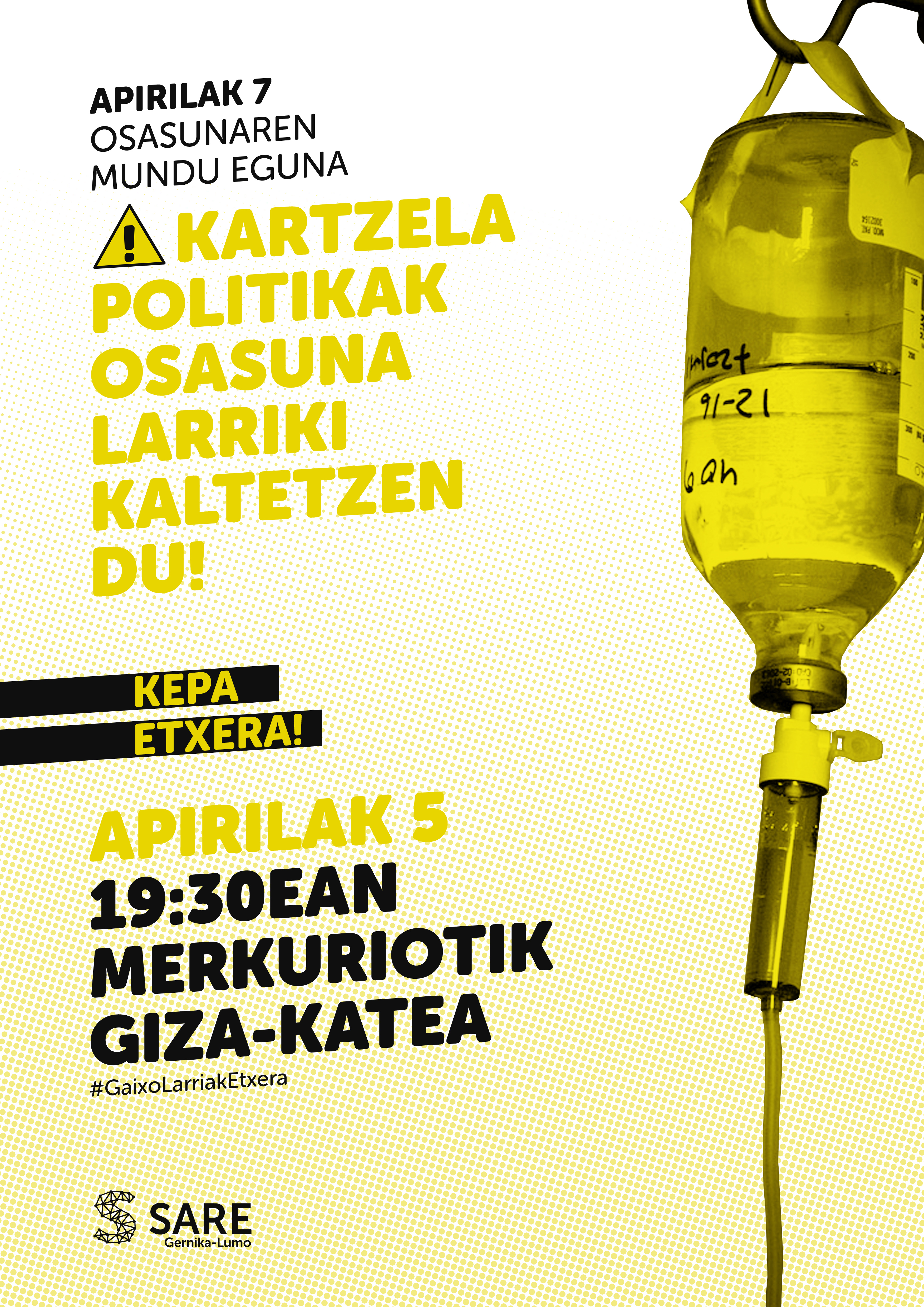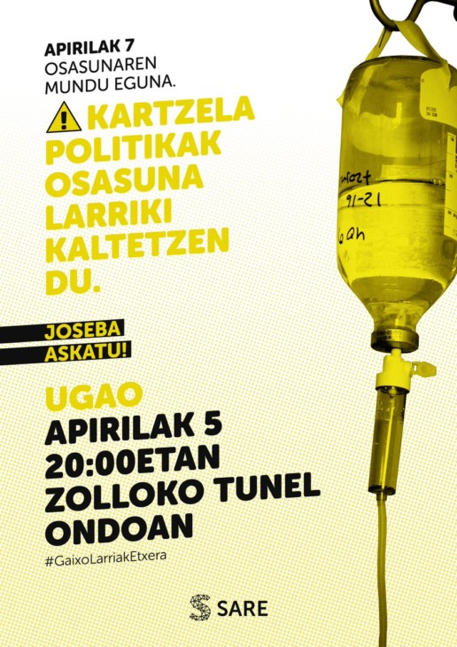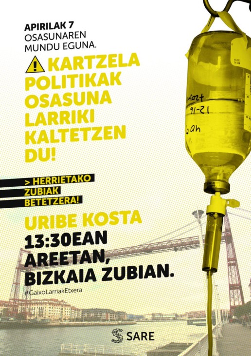 Bide honetan lanean jarraitzeko, Sare Herritarrak dei egiten du apirilaren 7an, Nazioarteko Osasunaren Egunean, herrietako zubiak gaixo larrien etxeratzearen alde betetzera.