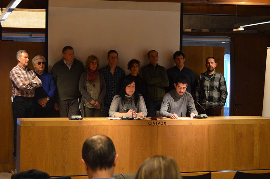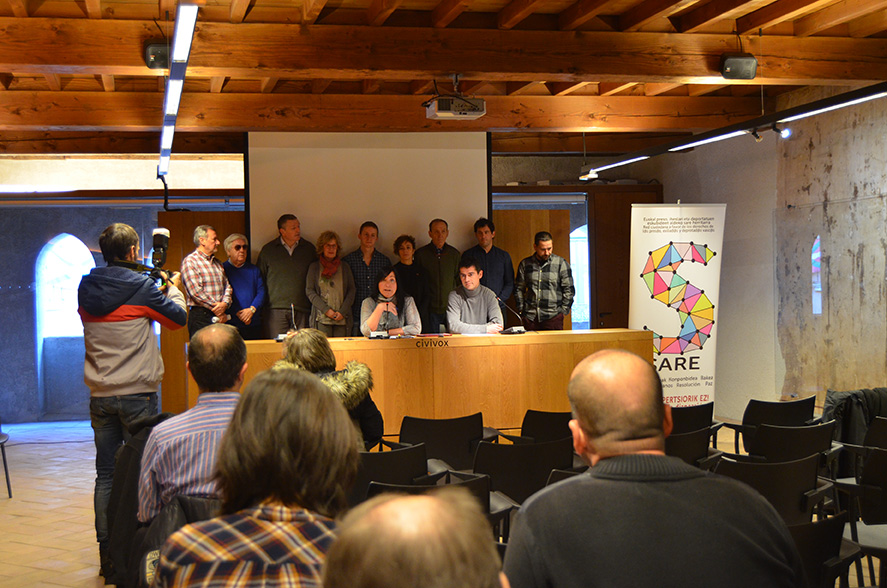 Hemen elkartu garenok ez gara etorri mobilizazio baten aldeko aldarria egiteko. Hemen gaudenok adierazi nahi dugu Nafarroako Sare Herritarraren kide garela. Eta adierazi nahi dugu, garbi, gure arteko desberdintasun ideologikoak gorabehera, giza eskubideen aldeko konpromisoak batzen gaituela.