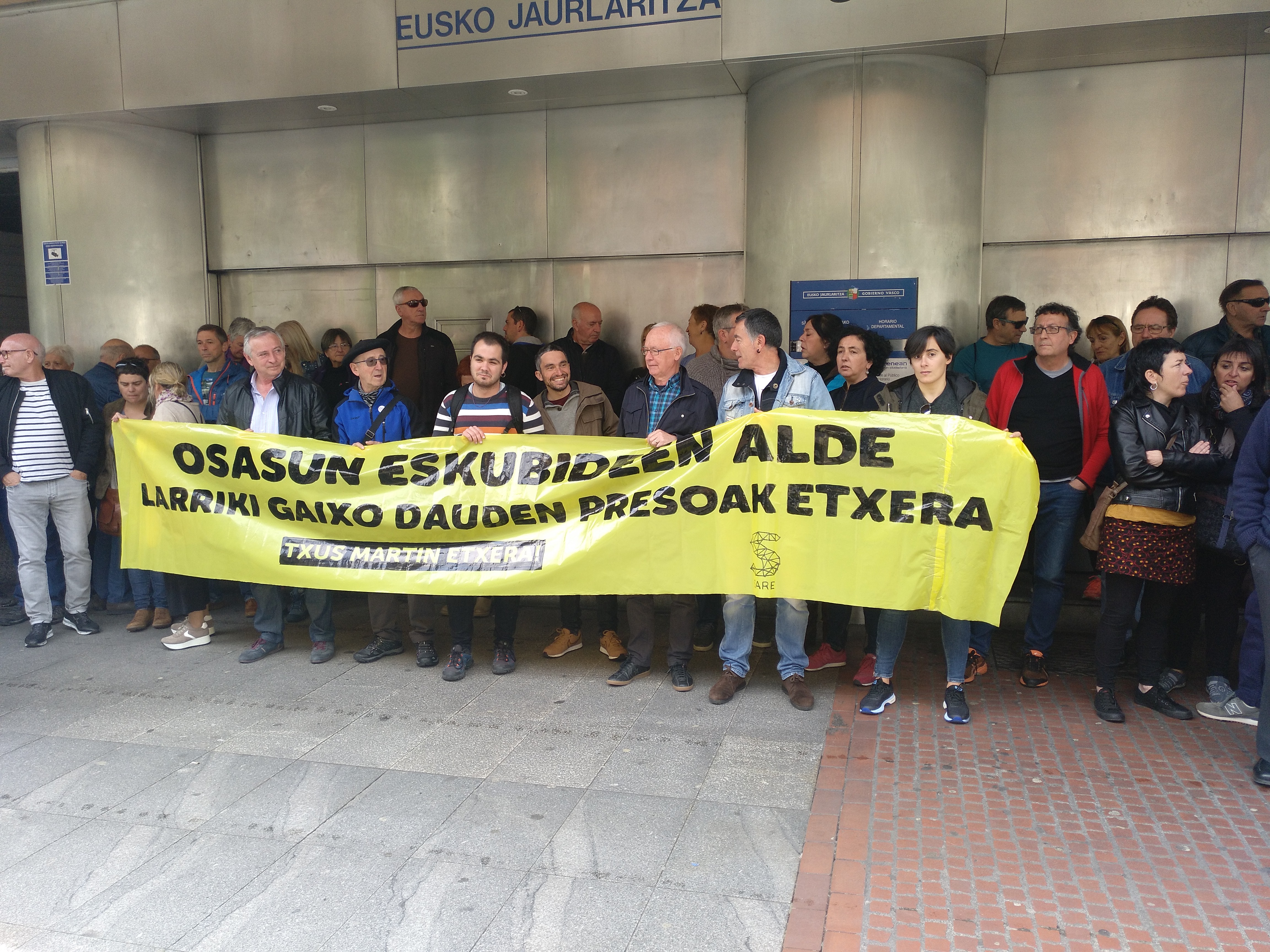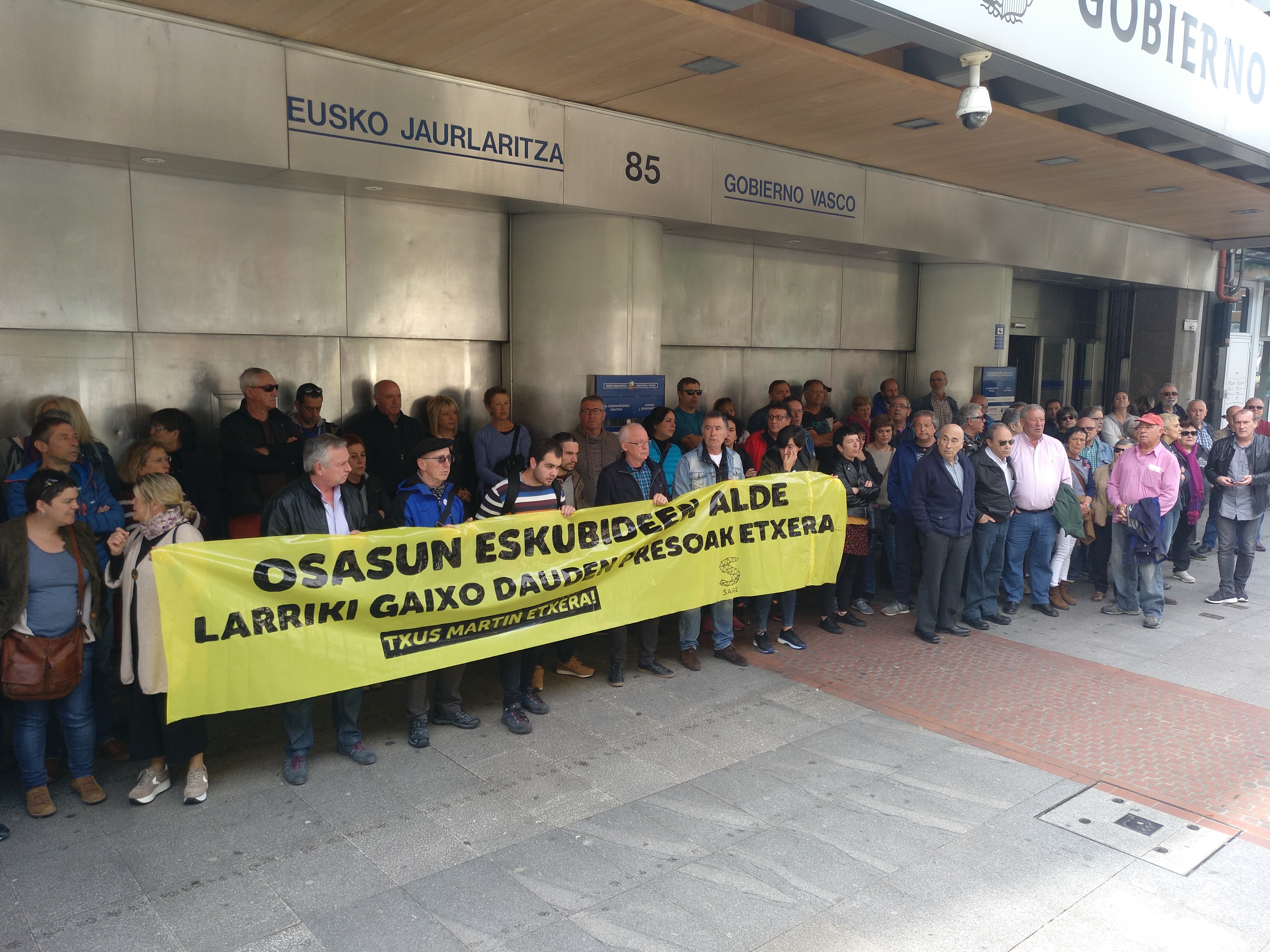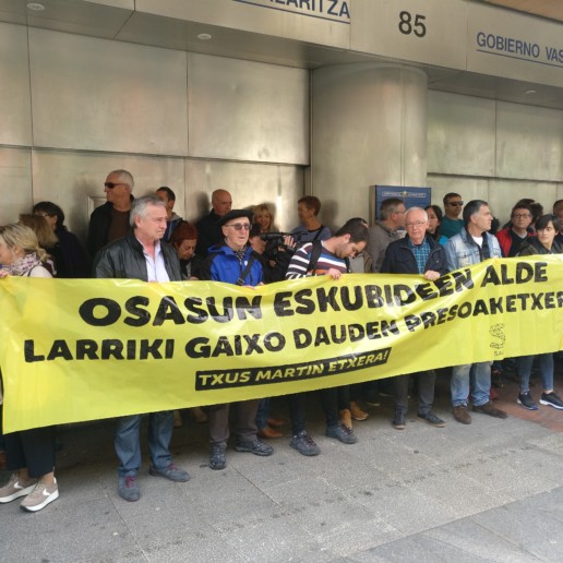 Sare Herritarrak elkarretaratzea egin du gaur Eusko Jaurlaritzaren delegaritza aurrean, Bilbon, Txus Martin larriki gaixo den presoaren berehalako etxeratzea eskatzeko. Ekimen hau pasa den larunbatean deitu zuten Zaintza Epailearen autuaren gainean Barne Sailak eginiko interpretazioarekin adierazitako jarrera salatzeko, “interpretazioa guztiz murriztailea, zeinak, Ertzaintzaren une oroko presentzia ahalbidetzen zuen Txus Martinen gelan bertan”.