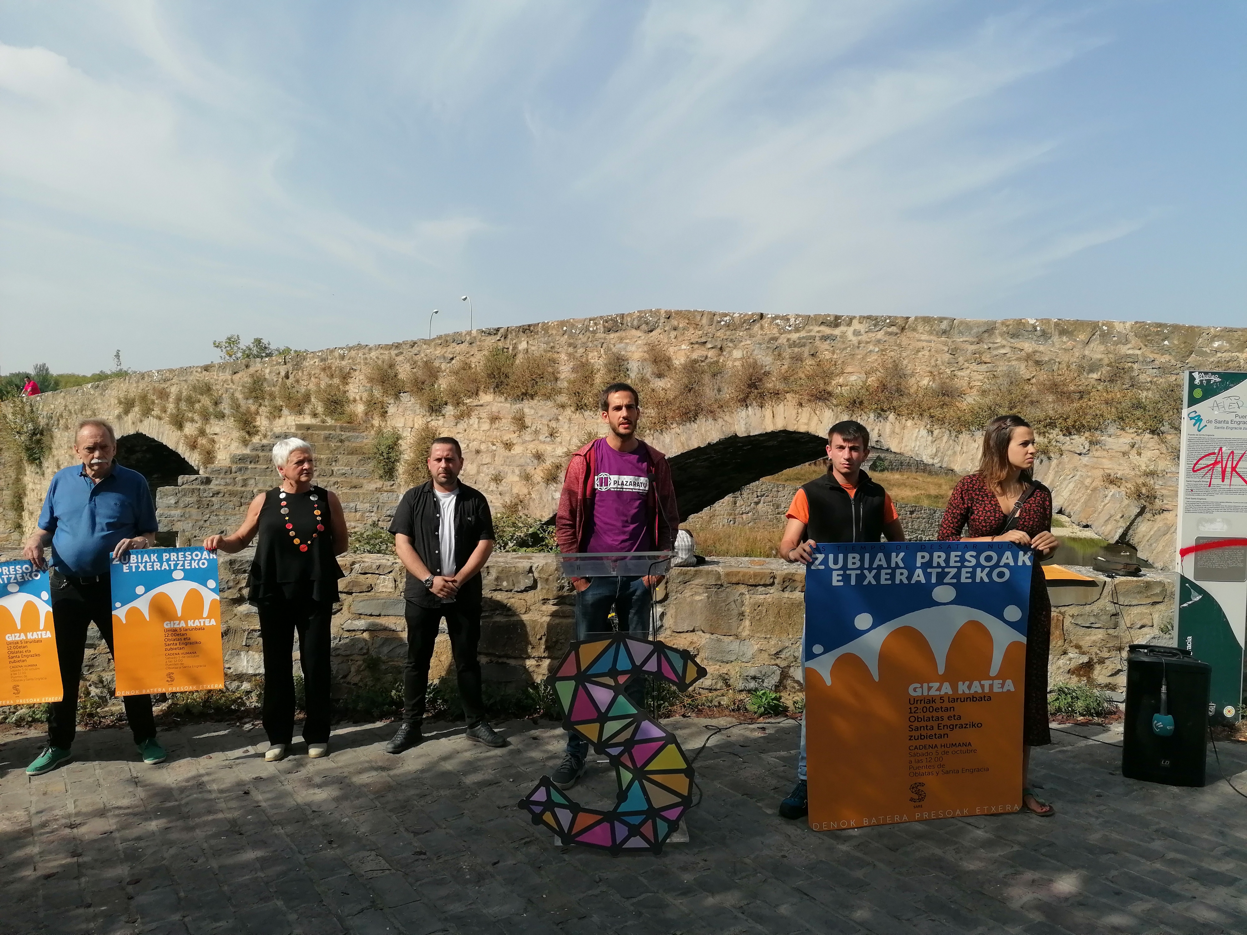 Urriaren 5ean Iruñeko bi zubi esanguratsu lotuko dituen Giza Kate Herritar baterako deia egin nahi dugu. Ekimen honekin, presoak etxeratzeko ezberdinen arteko zubi-lanaren garrantzia azpimarratu nahi dugu, adierazi nahi baitugu nafar jendartea izan behar dela presoen etxeratzea gauzatzeko eta konponbidean urratsak biderkatzeko zubiak eraiki behar dituena: nik, zuk, guk… denok leku beretik bultzatu behar dugula!